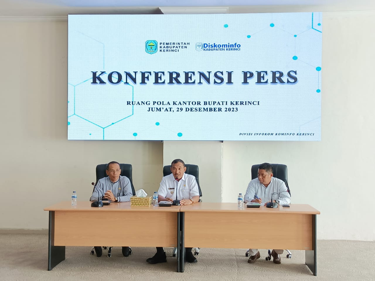 KERINCI – Pj. Bupati Kerinci Asraf, menggelar konferensi pers menyikapi aksi demo peserta seleksi Pegawai Pemerintah dengan Perjanjian Kerja (PPPK) yang menuntut kejelasan terhadap dugaan kecurangan dalam seleksi PPPK tahun 2023. Jumat (29/12/2023)