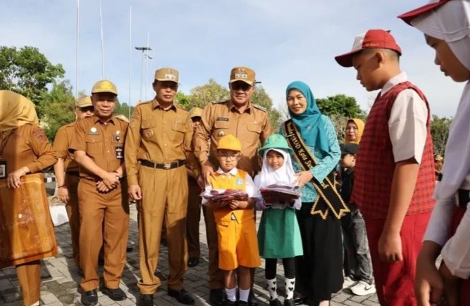 Kerincidaoly.com, SUNGAI PENUH – WaliKota Sungai Penuh, Alfin, S.H., didampingi Bunda Paud Kota Sungai Penuh Ny. Sri Kartini Alfin, S. Kep, NS secara resmi melaunching Program Prioritas Penyerahan Seragam Sekolah Gratis bagi siswa-siswi tingkat SD, SMP, dan TK se-Kota Sungai Penuh. Kegiatan ini berlangsung di halaman Kantor Walikota Sungai Penuh dan disambut antusias oleh para guru, orang tua, serta para pelajar. Senin (21/7)