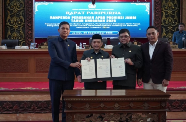 Hal tersebut dikemukakannya saat menghadiri Rapat Paripurna Dewan Perwakilan Rakyat Daerah (DPRD) Provinsi Jambi, Dengan Anggenda Perda Perubahan APBD Provinsi Jambi, Penyampaian Laporan Badan Anggaran, Penyampaian pendapat Akhir Fraksi, Pengambilan Keputusan Dewan dan Penandatanganan Persetujuan, bertempat di Ruang Sidang Utama Dewan Perwakilan Rakyat Daerah (DPRD) Provinsi Jambi, Jum’at (26/09/2025) siang.