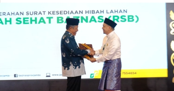 Rangkaian acara ditutup dengan penyerahan surat kesediaan hibah lahan oleh Ketua BAZNAS Provinsi Jambi Muhammad Amin, S.Km., M.Kes., sebagai wujud komitmen penguatan kelembagaan zakat di daerah.