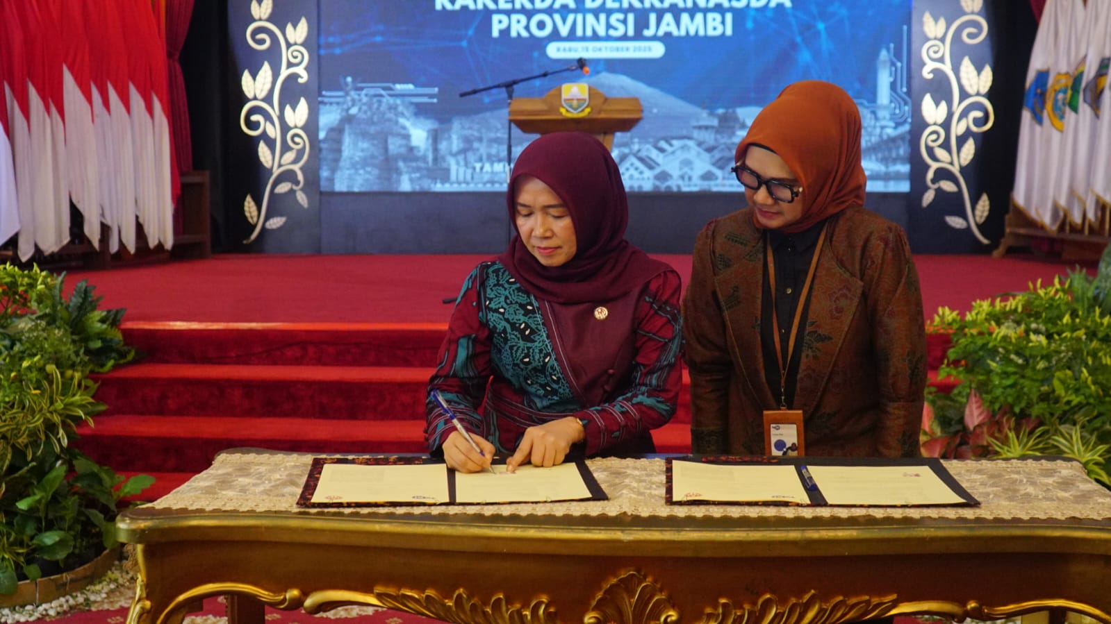Penandatanganan kerja sama ini berlangsung dalam Rapat Kerja Daerah (Rakerda) Dekranasda Provinsi Jambi yang digelar di Auditorium Rumah Dinas Gubernur Jambi, Rabu (15/10/2025).