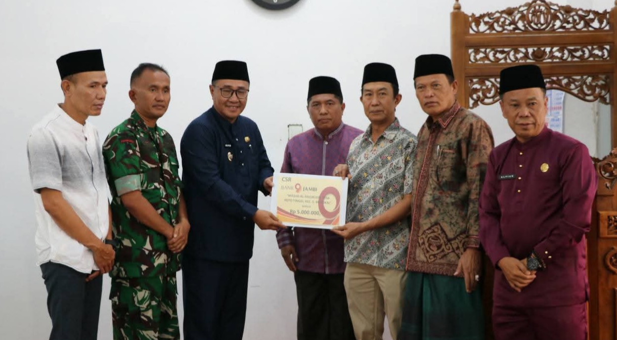Sebagai bentuk dukungan terhadap kegiatan keagamaan, Wali Kota Alfin bersama Wawako Azhar Hamzah menyerahkan bantuan Rp5 juta untuk pembangunan Masjid Al-Mukhlisin. Bantuan ini berasal dari Dana CSR Bank Jambi sebagai kolaborasi pemerintah dengan lembaga keuangan daerah.
