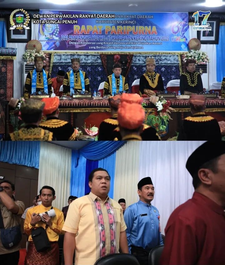 Rapat Paripurna tersebut dihadiri oleh Gubernur Jambi Alharis dan Ketua TP-PKK Provinsi Jambi, para Kepala Daerah se-Provinsi Jambi, Forkopimda, anggota DPRD Kabupaten Kerinci, serta tamu undangan lainnya, termasuk unsur pimpinan daerah dari Kota Sungai Penuh dan tokoh masyarakat Kerinci.