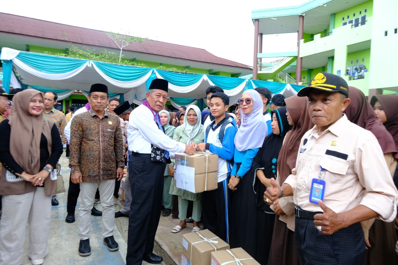 Kuala Tungkal,kerinci daily.com – Wakil Gubernur Jambi Drs. H. Abdullah Sani M.Pd.I menyalurkan 503 Bantuan Dumisake Pendidikan untuk Jenjang SMA, SMK dan SLB Se- Kabupaten Tanjung Jabung Barat Tahun 2025, bertempat di SMAN 1 Tanjung Jabung Barat, Sabtu (29/11/2025).